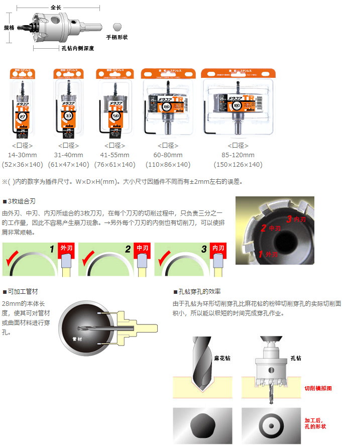 ◇所有規(guī)格均裝備有排屑用彈簧(規(guī)格18mm以上)/可加工管材及不銹鋼