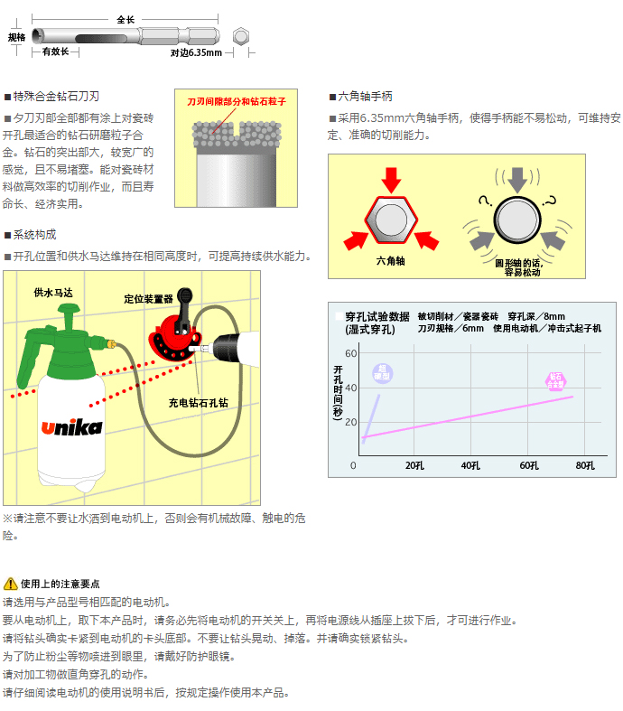 ■刀尖采用特殊金剛石顆粒,可應(yīng)對瓷器?瓷磚類鉆孔,壽命優(yōu)于硬質(zhì)合金鉆頭。