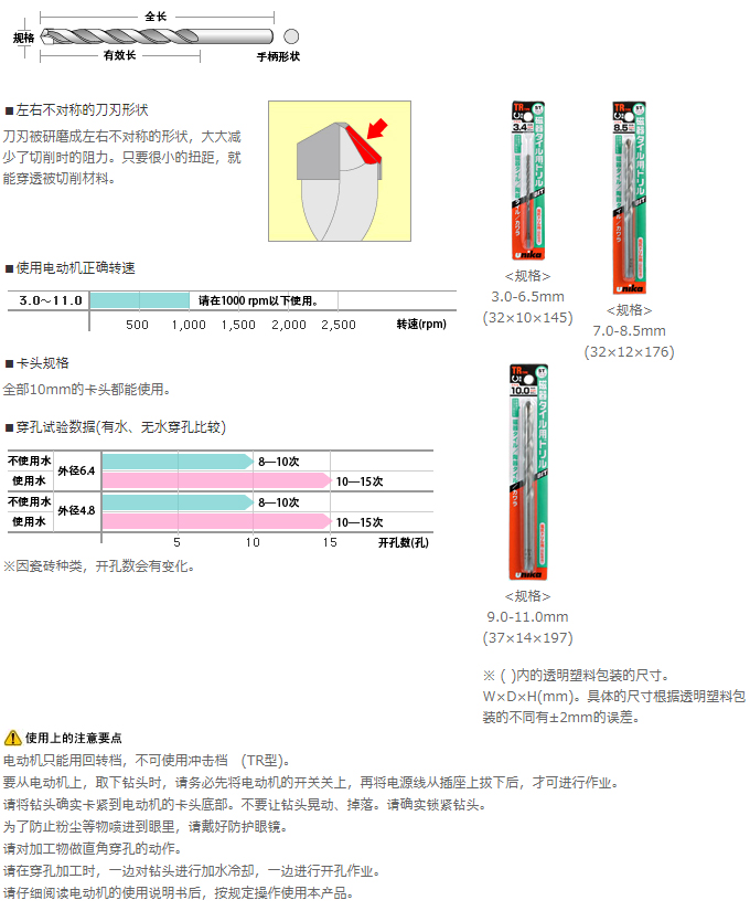 ■高耐磨、特殊硬質(zhì)合金刀刃的采用,對(duì)難以切削的材料,也能實(shí)現(xiàn)快速穿孔。