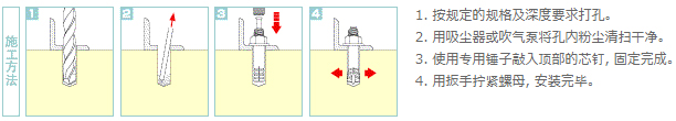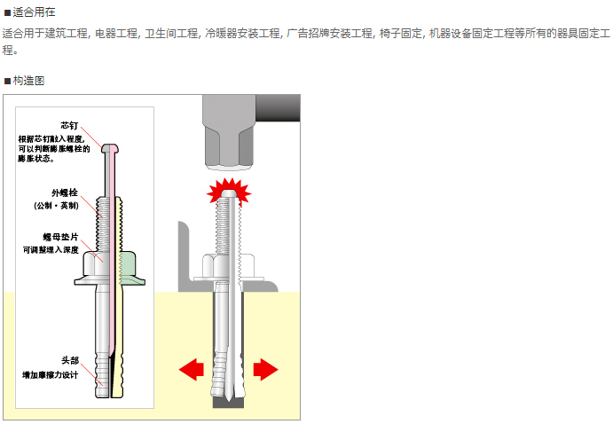 ■只需將頂部的芯釘敲入便可完成施工。另外, 通過檢查芯釘?shù)耐饴稜顩r, 便可確認(rèn)底部是否已經(jīng)完全脹開。