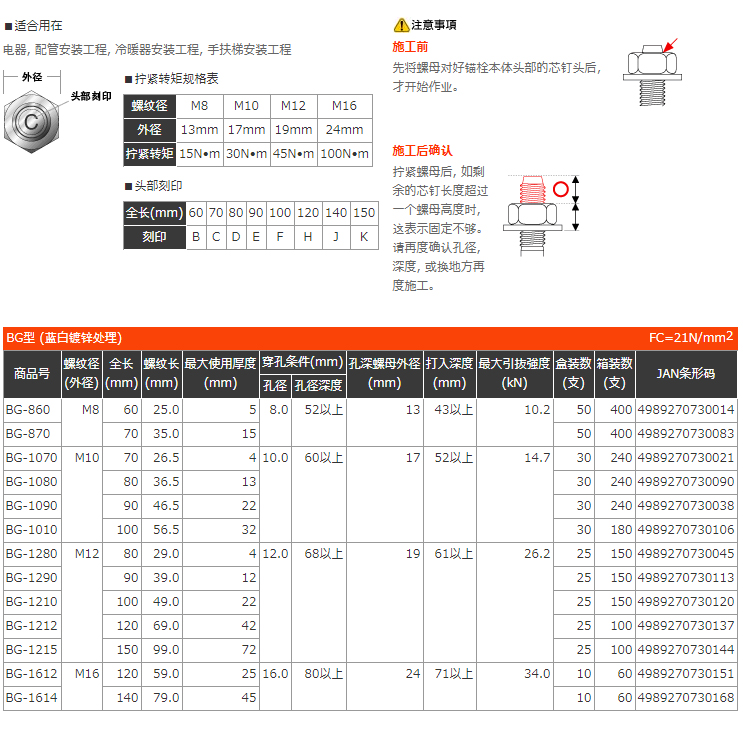 ■利用扭矩原理的施工以及增加頭部摩擦力的設(shè)計(jì), 使得該產(chǎn)品能得到極高強(qiáng)度的固定力。