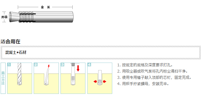 ■固定完畢后,可與掛件器具、鋼筋等物體直接焊連在一起的特殊專用錨栓。