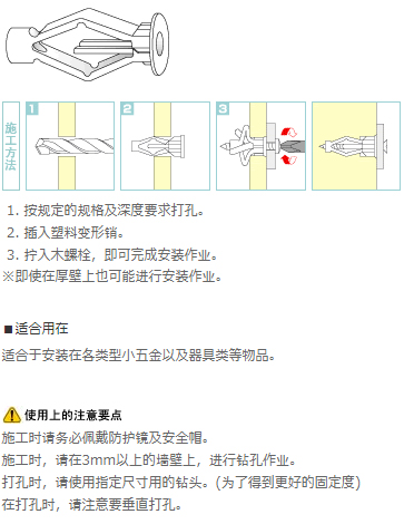 ■這類型錨栓還具有耐熱、耐寒的特征。即使在零下30度的條件下,受到?jīng)_擊也不會破損。